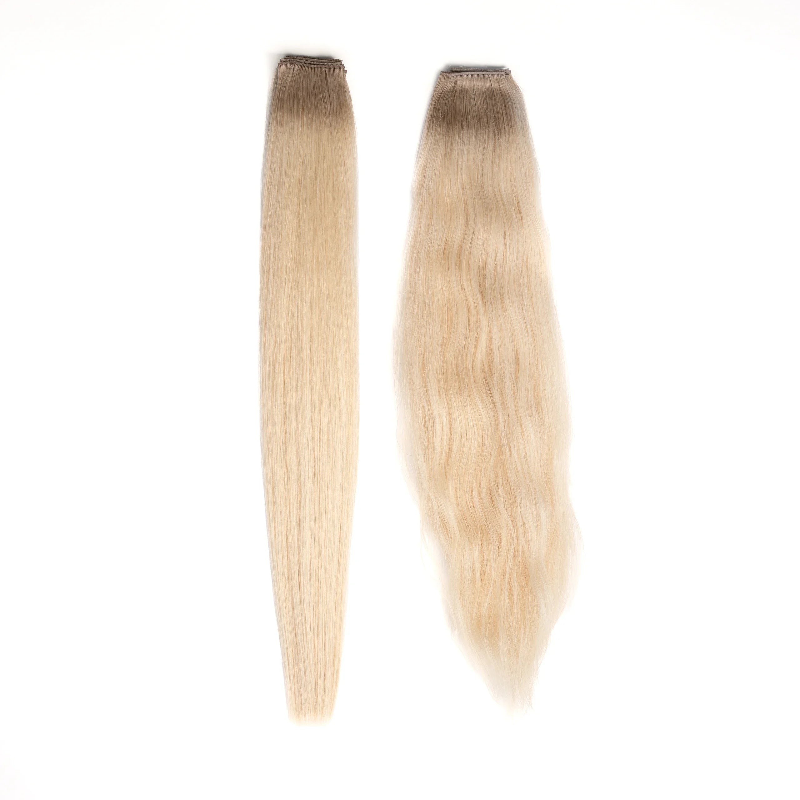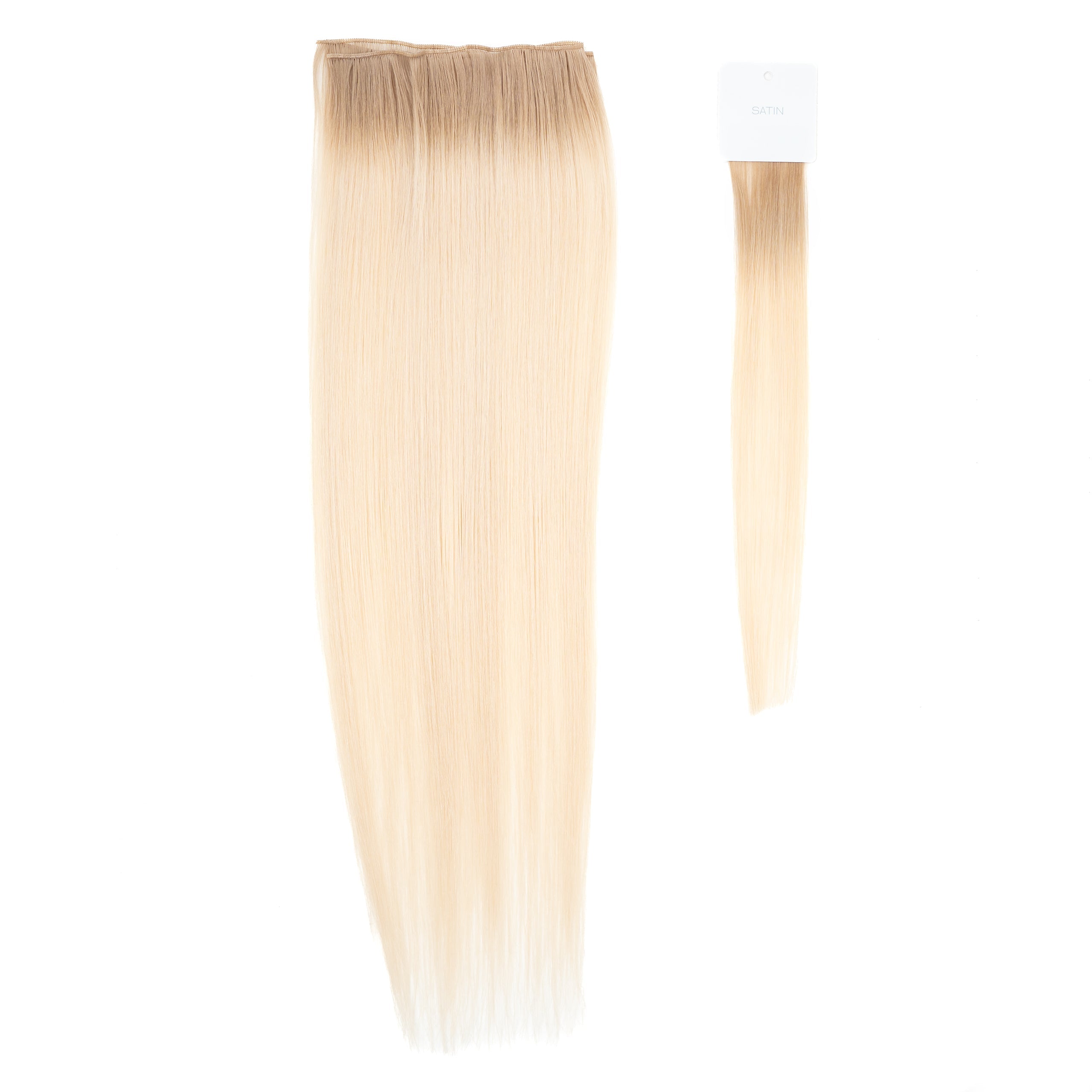 Satin is the coolest option in our rooted blonde collection, featuring an ashy level 8 root that transitions into a cool-toned, bright blonde. This shade offers a modern look, perfect for clients who want a striking blonde without warm or golden undertones. The ashy root adds subtle contrast, maintaining its cool tone throughout. Satin is ideal for those seeking an icy-blonde appearance and complements natural hair colors with cooler or neutral undertones.