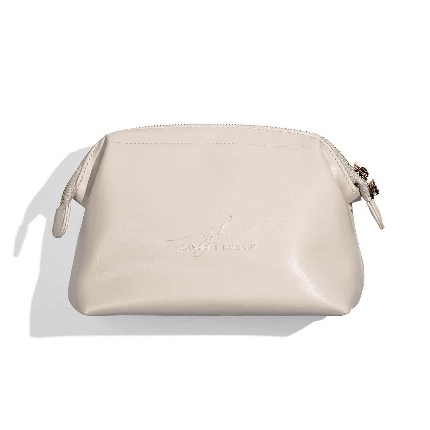 This luxe vegan leather cosmetics bag is perfect to carry your Goldie Locks® Signature Essential Minis. The structured frame ensures the bag retains its shape while open or closed, and the spacious interior makes this beauty accessory the ideal travel companion.